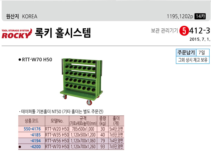 [·ÏŰ/ROCKY] Å×ÀÌÆÛÅøº¸°ü´ë/Å×ÀÌÆÛÅøº¸°üÇÔ(RTT-W35H50, 1120x500x1200mm, À̵¿½Ä)(Taper Tool Pick up)