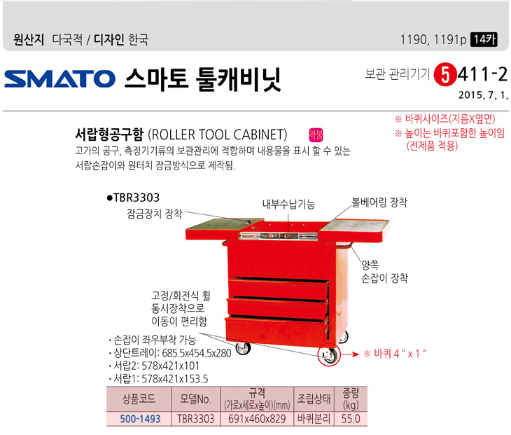 [½º¸¶ÅäÅøÄɺñ³Ý] ·Ñ·¯ À̵¿Çü ¼­¶øÇü°ø±¸ÇÔ(TBR3303, 691x460x829mm)(Roller Tool Cabinet)=>Á¦Ç°´ÜÁ¾!
