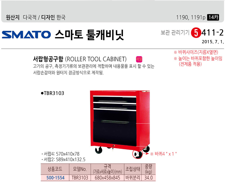 [½º¸¶ÅäÅøÄɺñ³Ý] ·Ñ·¯ À̵¿Çü ¼­¶øÇü°ø±¸ÇÔ(TBR3103, 680x458x845mm)(Roller Tool Cabinet)=>Á¦Ç°´ÜÁ¾!