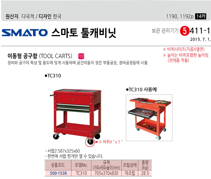 [½º¸¶ÅäÅøÄɺñ³Ý] À̵¿Çü °ø±¸ÇÔ(TC310, 705x370x830mm, ¹ÌÁ¶¸³¹ß¼Ûǰ)(Tool Carts)