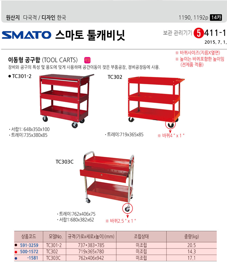[½º¸¶ÅäÅøÄɺñ³Ý] À̵¿Çü °ø±¸ÇÔ(TC301-2, 737x383x785mm, ¹ÌÁ¶¸³¹ß¼Ûǰ)(Tool Carts)