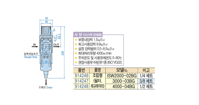 [À̽ºÅØ]¿¡¾î ÇÊÅÍ+¿¡¾î ·¹Å¥·¹ÀÌÅÍ Á¶¸³Çü(FILTER WITH REGULATOR) ISW3000-03BG:´ÜÁ¾!!
