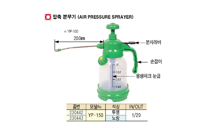 [¿µÇ³] ¾ÐÃà ºÐ¹«±â (AIR PRESSURE SPRAYER) YP-150 ³ë¶û:´ÜÁ¾!!