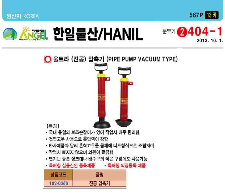 [ÇÑÀϹ°»ê] ¿ïÆ®¶ó Áø°ø ¾ÐÃà±â (PIPE PUMP VACUUM TYPE)