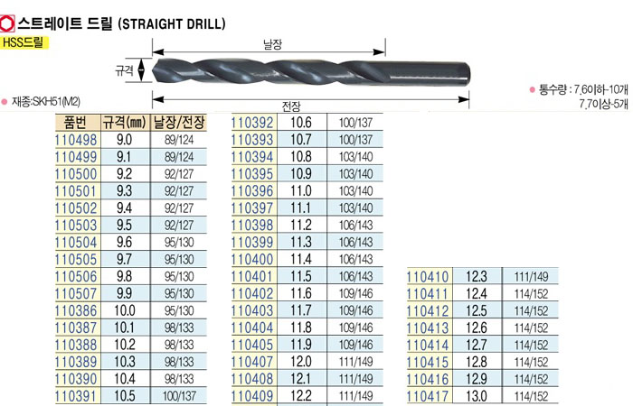 [TAEHWA]½ºÆ®·¹ÀÌÆ® µå¸±(STRAIGHT DRILL)10.0~10.3mm(5°³¼¼Æ®)
