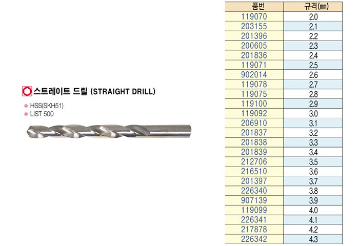 [NACHI]½ºÆ®·¹ÀÌÆ® µå¸±(STRAIGHT DRILL)2.8~3.5mm:10°³ ¹­À½