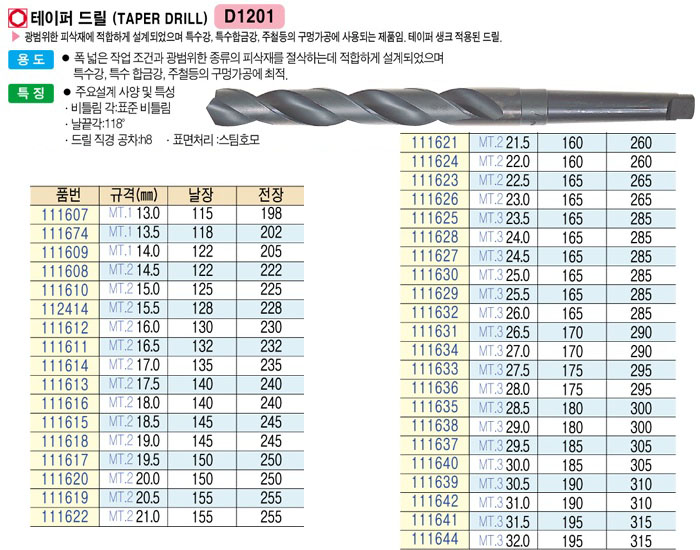 [YG]Å×ÀÌÆÛ µå¸±(TAPER DRILL)D1201 28.0~32.0mm