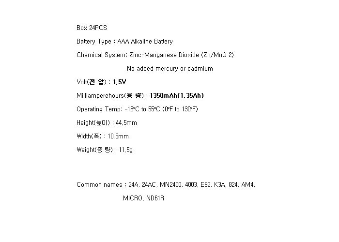 LR03-24PCS(X92 AAA 1.5V 1350mAh)¾îµå¹ê½º