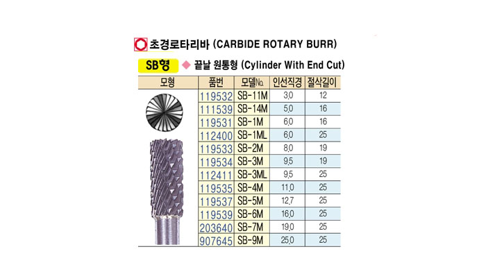 [¿ÍÀÌÁö¿ø] Ãʰæ·ÎŸ¸®¹Ù (CARBIDE ROTARY BURR) SBÇü SB-11M ~ SB-3M