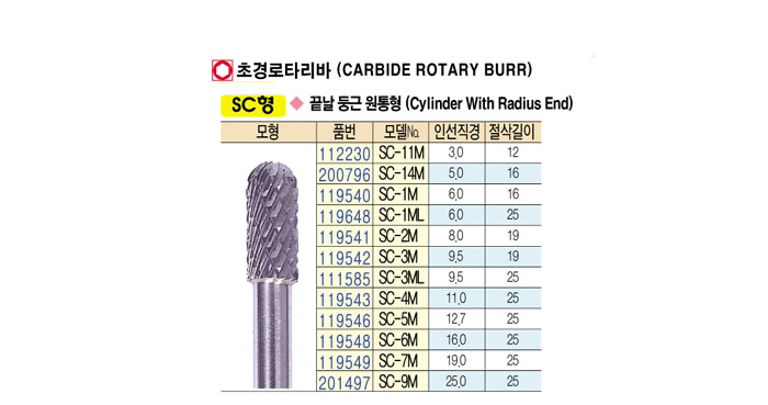 [¿ÍÀÌÁö¿ø] Ãʰæ·ÎŸ¸®¹Ù (CARBIDE ROTARY BURR) SCÇü SC-11M ~ SC-3M