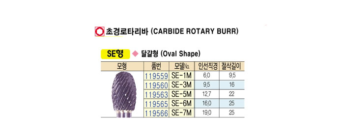 [¿ÍÀÌÁö¿ø] Ãʰæ·ÎŸ¸®¹Ù (CARBIDE ROTARY BURR) SEÇü SE-1M ~ SE-7M