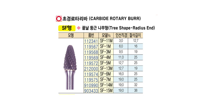 [¿ÍÀÌÁö¿ø] Ãʰæ·ÎŸ¸®¹Ù (CARBIDE ROTARY BURR) SFÇü SF-11M ~ SF-15M
