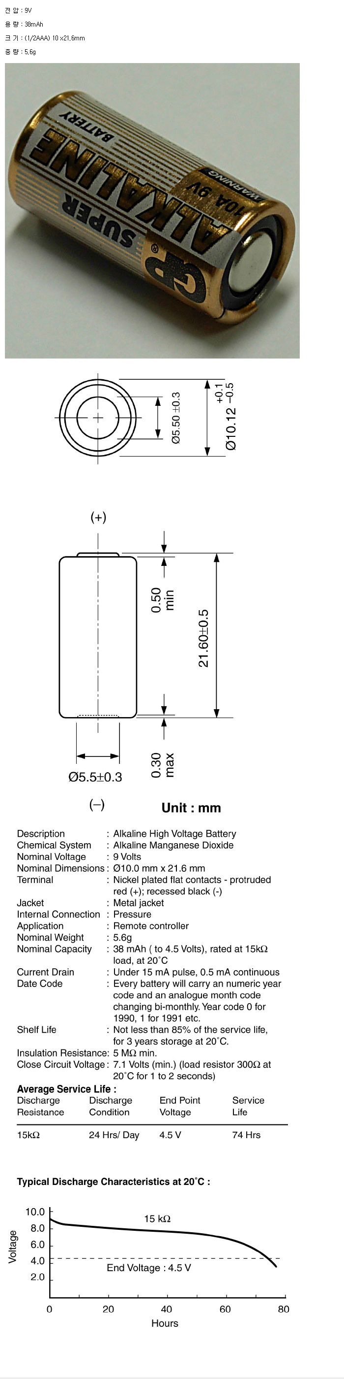 GP10A(1/2AAA 9V 38mAh):¼öÀÔÁß´Ü,ǰÀý!!