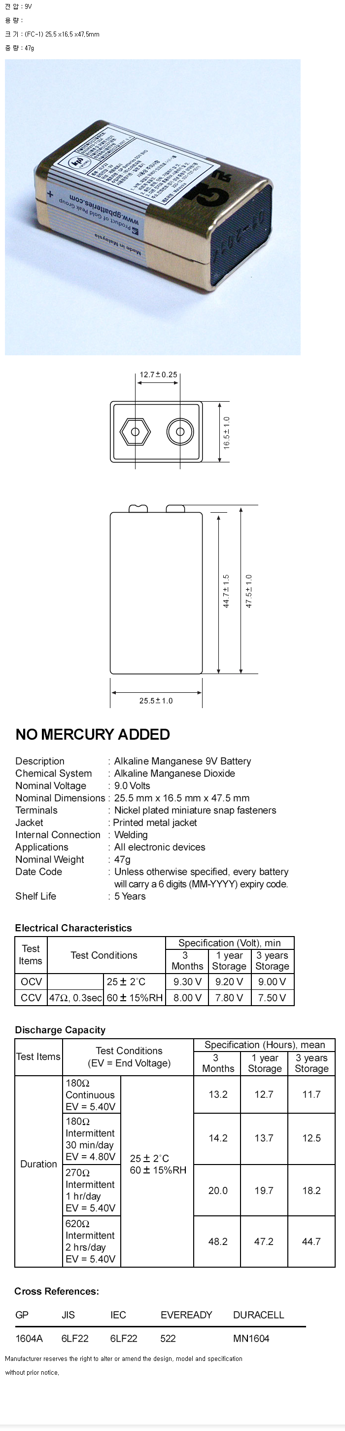 GP1604A(FC-1, 6LF22 / 9V):¼öÀÔÁß´Ü,ǰÀý!!