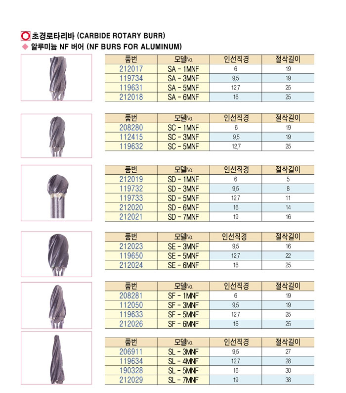 [¿ÍÀÌÁö¿ø] Ãʰæ·ÎŸ¸®¹Ù (CARBIDE ROTARY BURR) ¾Ë·ç¹Ì´½ NF ¹ö¾î SD-1MNF ~ SE-6MNF