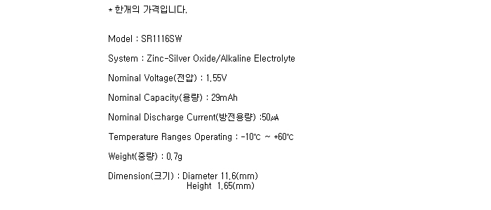SR1116SW(366/1.55V 29mAh)Ma =>Á¦Ç°´ÜÁ¾!