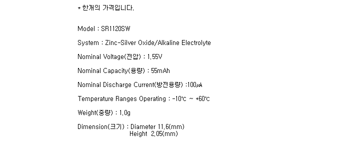SR1120SW(391/1.55V 55mAh)Ma