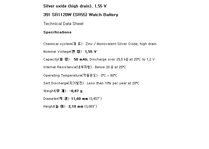 Renata 391-10PCS(SR1120W 1.55V 50mAh) Silver