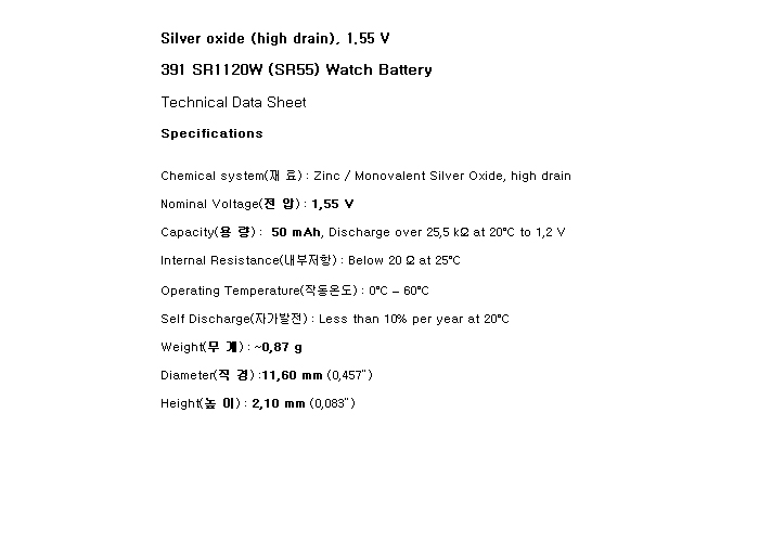 Renata 391(SR1120W 1.55V 50mAh) Silver