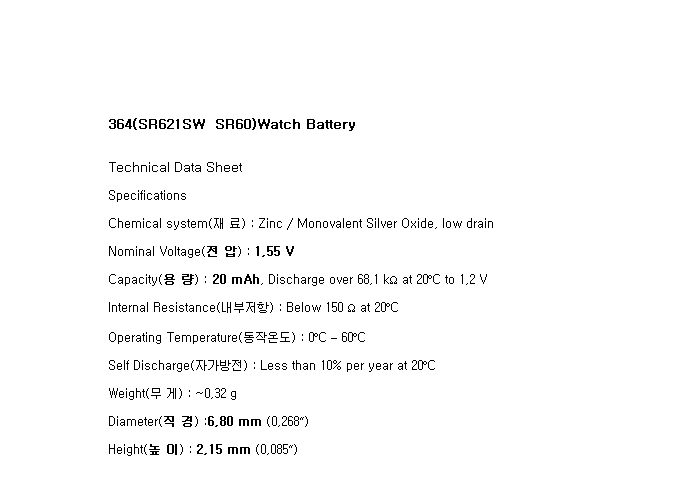 364(SR621SW 1.55V 20mAh)Re