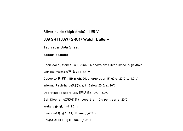 389(SR1130W 1.55V 80mAh)Re