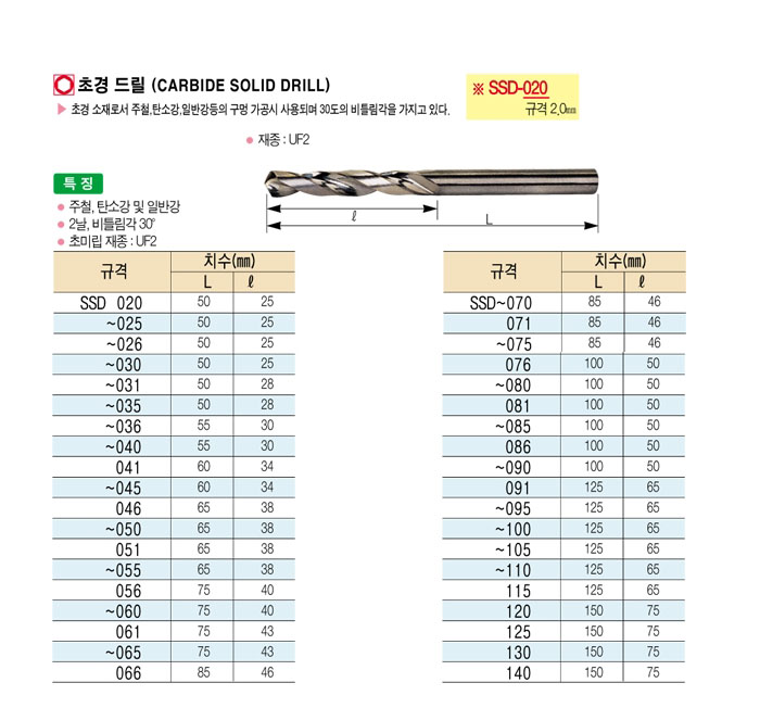 [´ë±¸ÅØ] ÃÊ°æ µå¸± (CARBIDE SOLID DRILL) SSD020 ~ SSD~045
