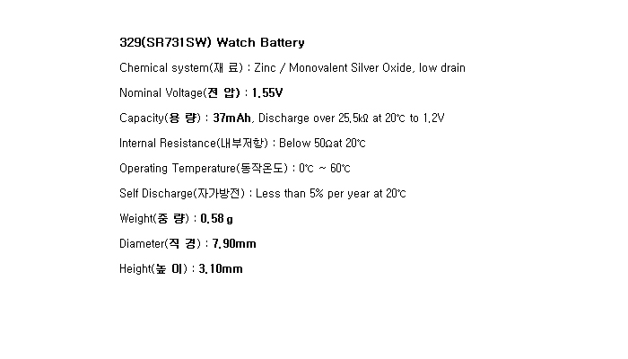 329(SR731SW 1.55V 37mAh)Re