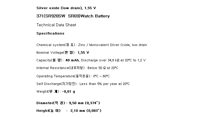 371(SR920SW 1.55V 40mAh)Re