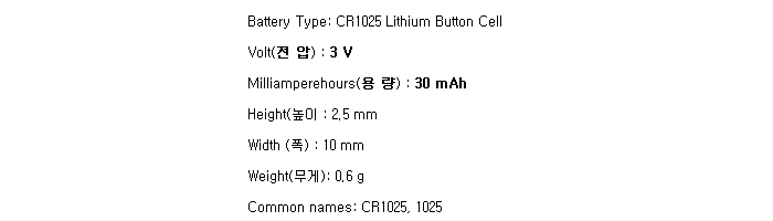 CR1025-BP(3V 30mAh)Ma