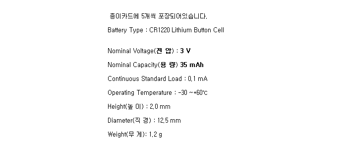 CR1220-5BP(3V 35mAh)Pa