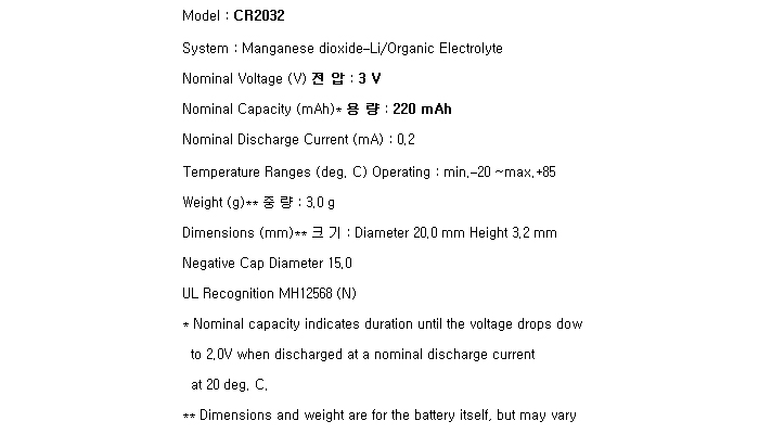 CR2032-BP(3V 220mAh)Ma