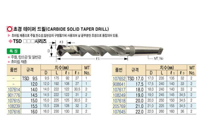 [´ë±¸ÅØ] Ãʰæ Å×ÀÌÆÛ µå¸± (CARBIDE SOLID TAPER DRILL) TSD9.5 ~ TSD16.0