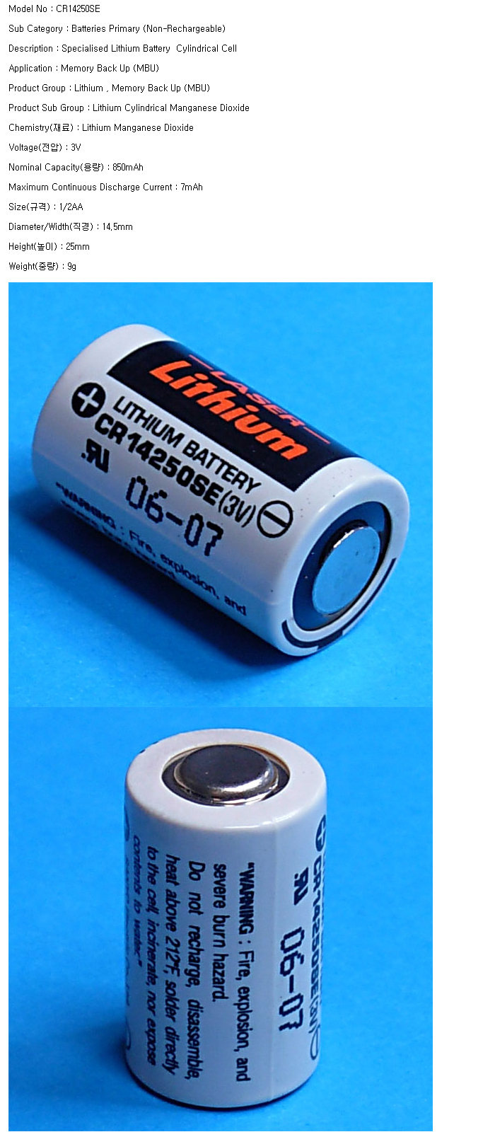 CR14250SE(1/2AA 3V 850mAh)