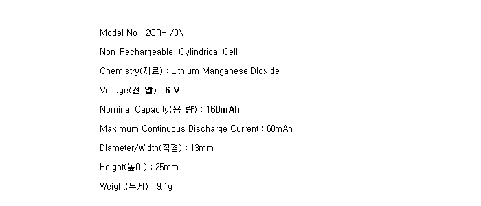Sanyo 2CR-1/3N(6V 160mAh)=>Á¦Ç°´ÜÁ¾!