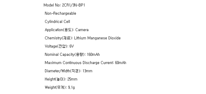 2CR-1/3N-BULK(6V)=>Á¦Ç°´ÜÁ¾!
