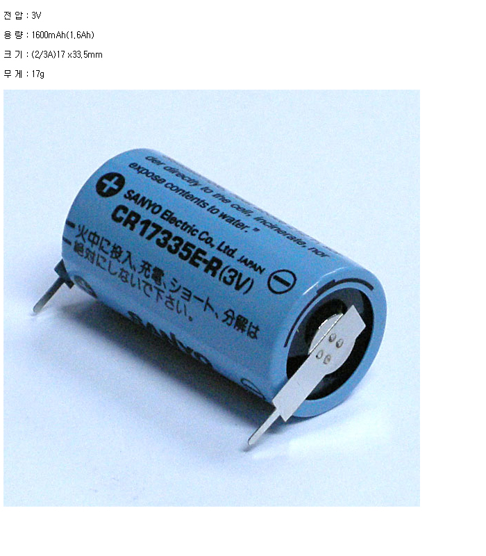 CR17335E-R-V2P(2/3A 3V 1600mAh)