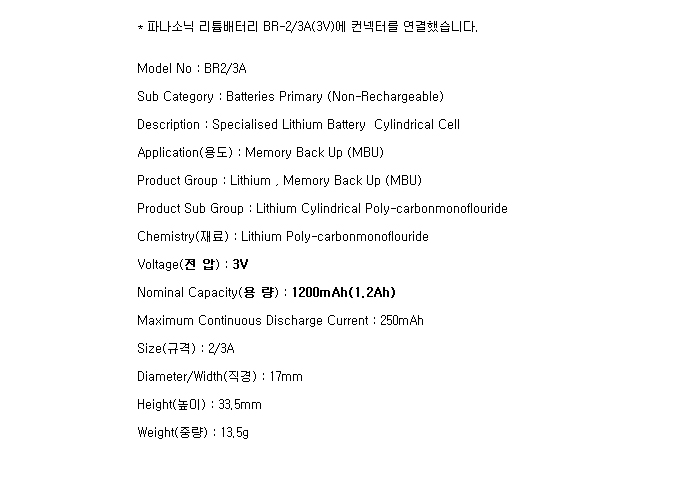 BR-2/3A-C145550(3V 1200mAh)Pa