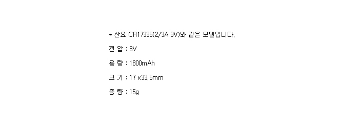 CR 2/3 8L-F1ST2S(CR17335 3V 1800mAh)=>¼öÀÔÁß´Ü, Á¦Ç°´ÜÁ¾!