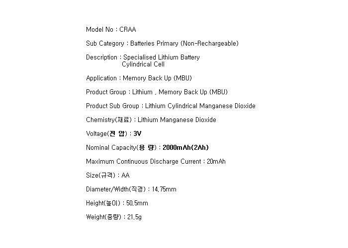 CR-AA(AA 3V 2000mAh)