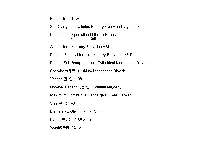 CR-AA-V2PWH(AA 3V 2000mAh)