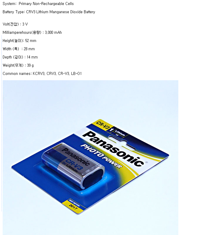 CR-V3-BP(3V 3000mAh) Pa =>Á¦Ç°´ÜÁ¾!