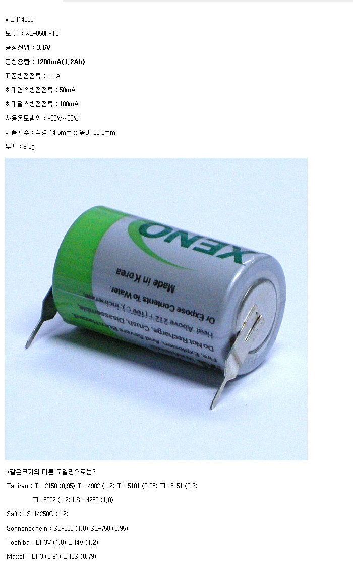 XL-050F-T2(1/2AA 3.6V 1200mAh)