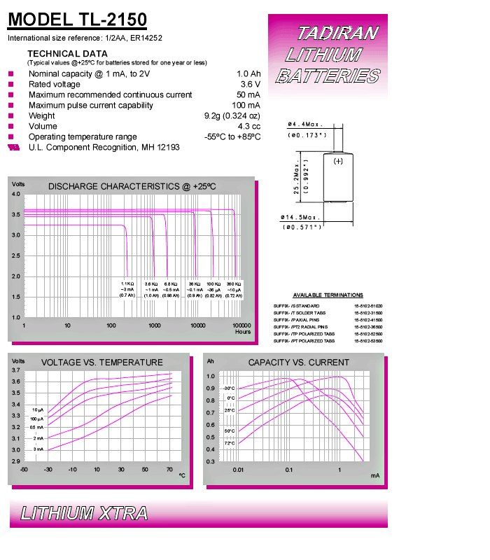 TL2150(1/2AA 3.6V 1000mAh)C5264RB