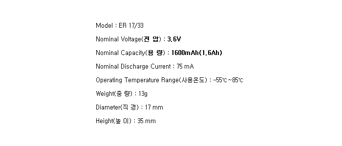 ER17/33(2/3A 3.6V 1600mAh)C145550-RR