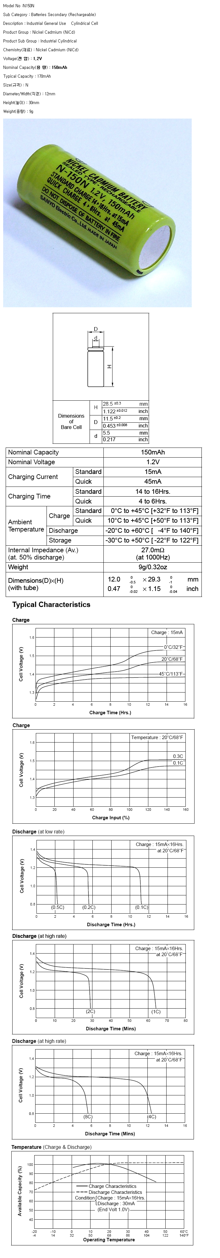 N-150N(N 1.2V 150mAh)