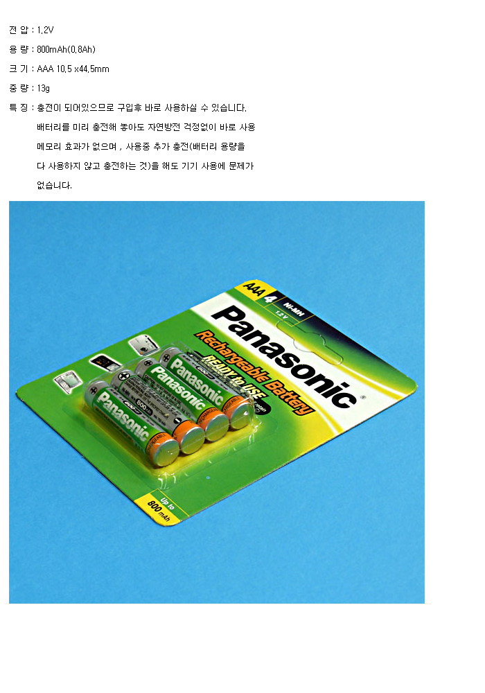 Panasonic HHR-4MPT-4BP(AAA 1.2V 800mAh)RTU