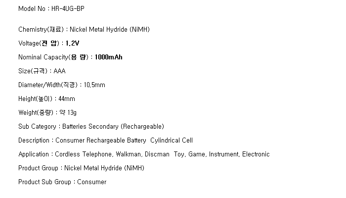 HR-4UG-2BP(AAA 1.2V 1000mAh)New