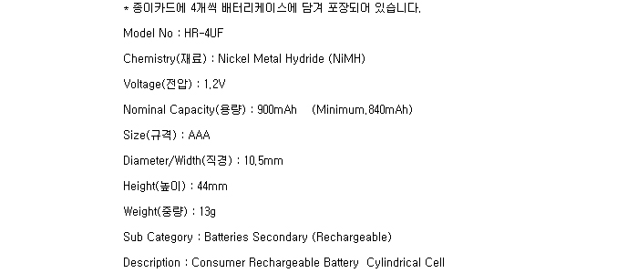 HR-4UF-4BP(AAA 1.2V 900mAh)