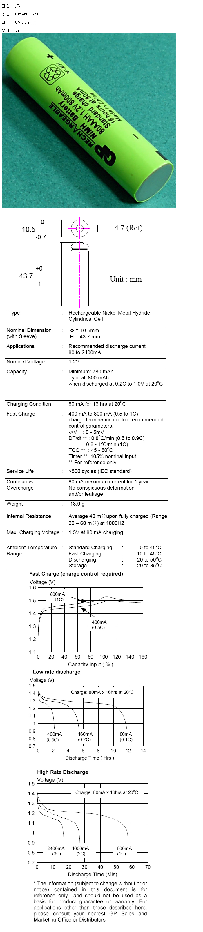 GP80AAAH(AAA 1.2V 800mAh):¼öÀÔÁß´Ü,ǰÀý!!