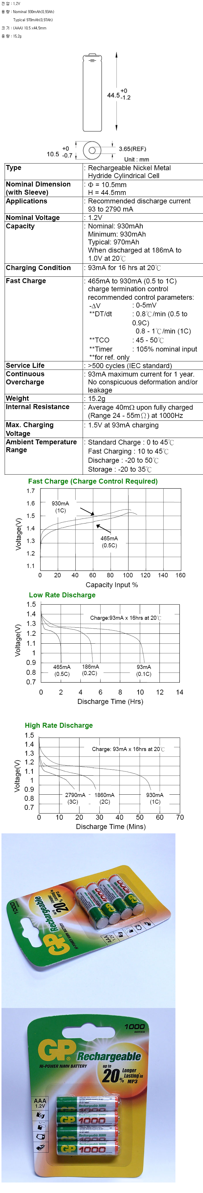 GP100AAAHC-4BP(AAA 1.2V 970mAh):¼öÀÔÁß´Ü,ǰÀý!!